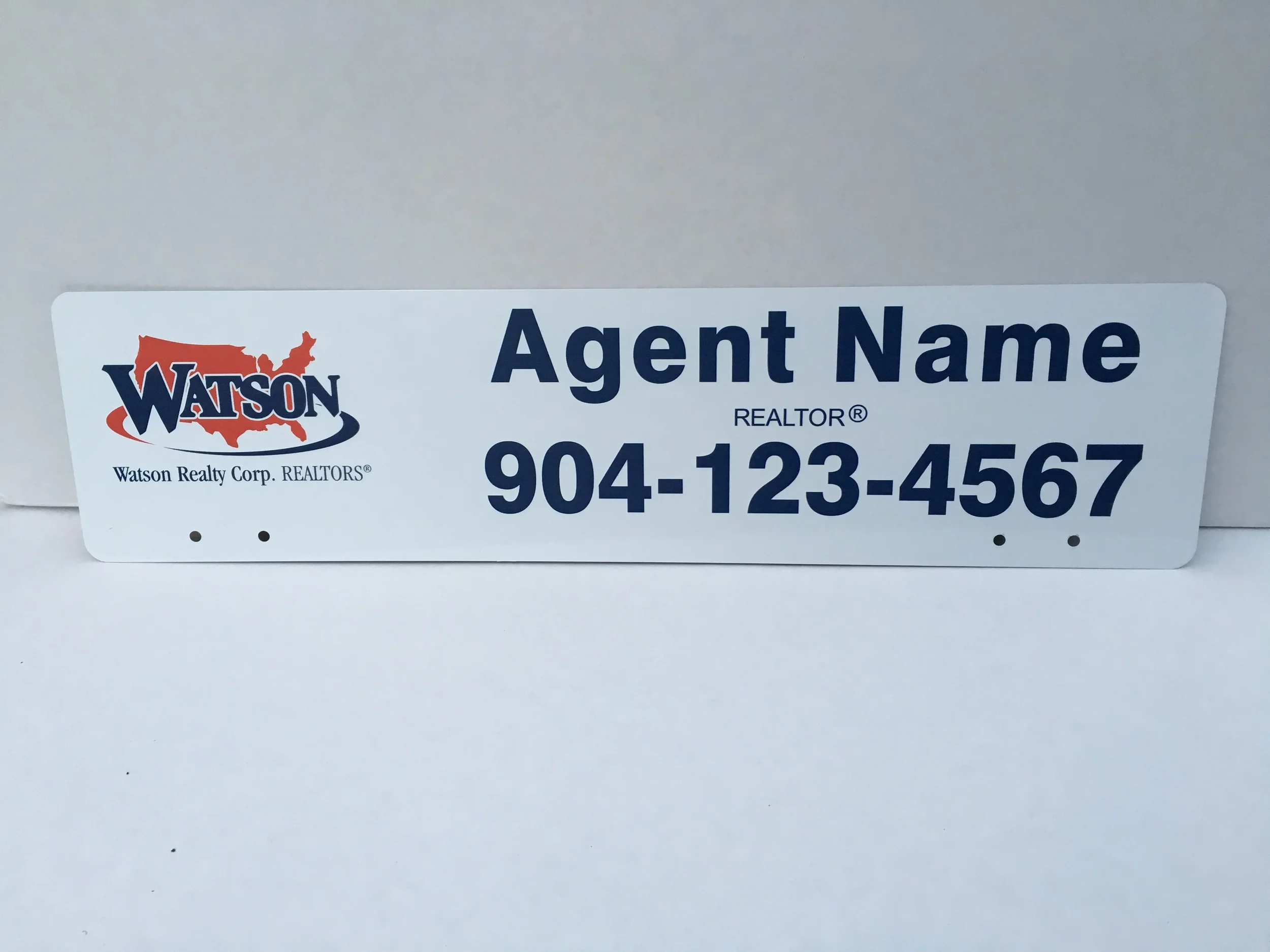 Agents can personalize the sign with their own name and number. The sign does not include a frame.